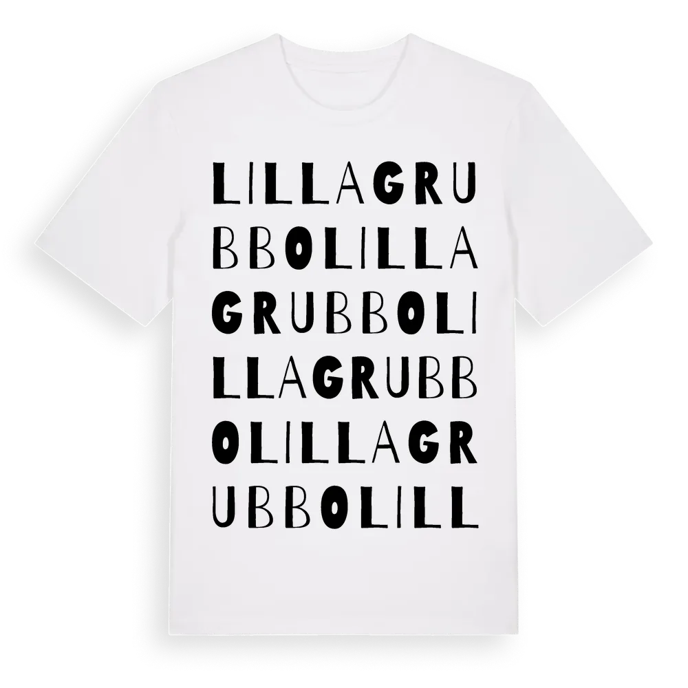 Lilla Grubbo ordlek t-shirt är inspirerad av Lilla Grubbo i Dalarnas län, Sverige. Tröjan är designad för dig som har en speciell koppling till platsen – oavsett om du bor här, har rötterna här eller bara älskar Lilla Grubbo.