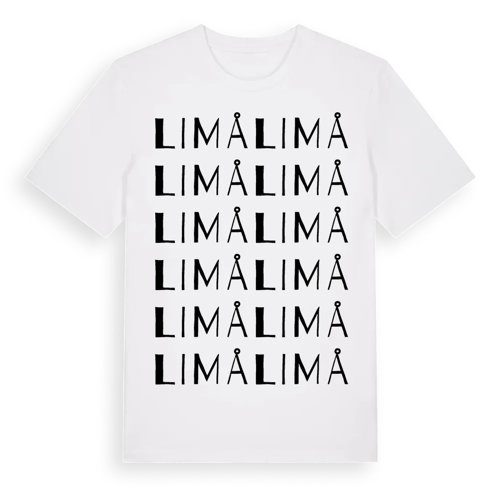 Limå ordlek t-shirt är inspirerad av Limå i Dalarnas län, Sverige. Tröjan är designad för dig som har en speciell koppling till platsen – oavsett om du bor här, har rötterna här eller bara älskar Limå.