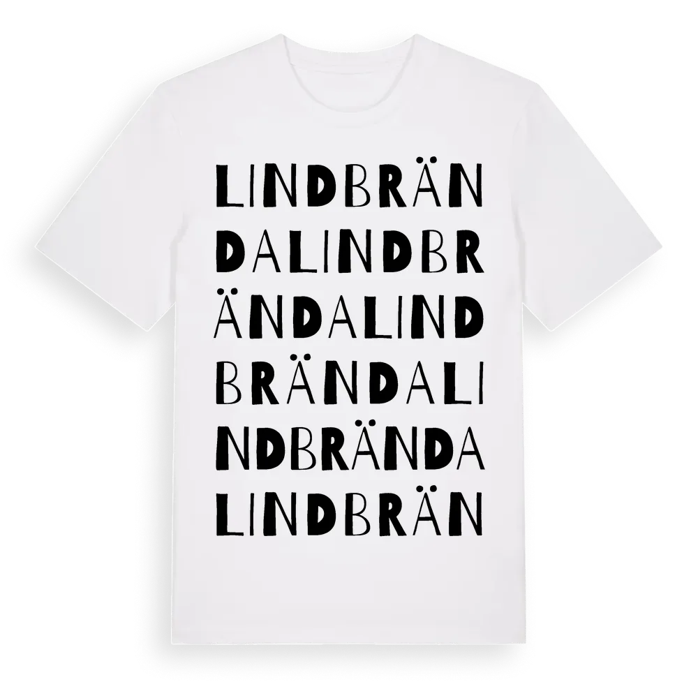 Lindbrända ordlek t-shirt är inspirerad av Lindbrända i Dalarnas län, Sverige. Tröjan är designad för dig som har en speciell koppling till platsen – oavsett om du bor här, har rötterna här eller bara älskar Lindbrända.