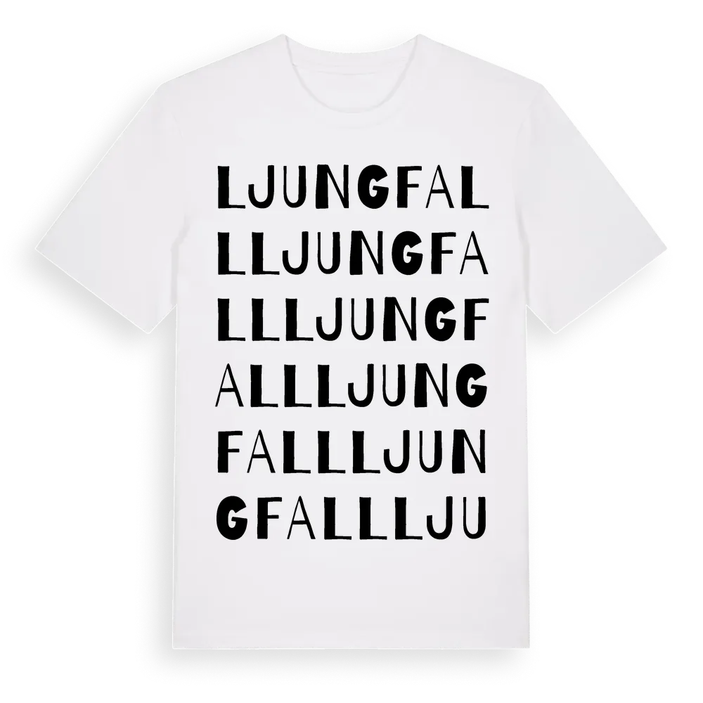 Ljungfall ordlek t-shirt är inspirerad av Ljungfall i Dalarnas län, Sverige. Tröjan är designad för dig som har en speciell koppling till platsen – oavsett om du bor här, har rötterna här eller bara älskar Ljungfall.