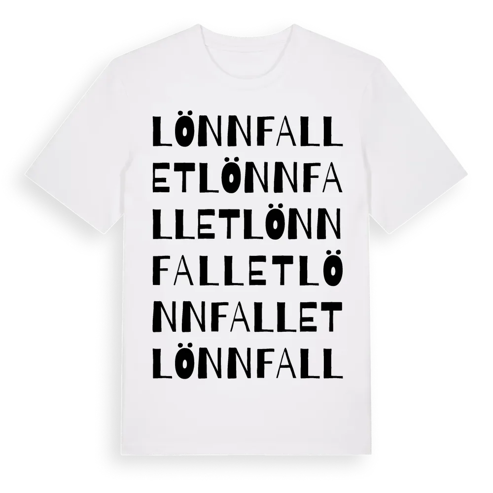 Lönnfallet ordlek t-shirt är inspirerad av byn Lönnfallet i Dalarnas län, Sverige. Tröjan är designad för dig som har en speciell koppling till platsen – oavsett om du bor här, har rötterna här eller bara älskar Lönnfallet.