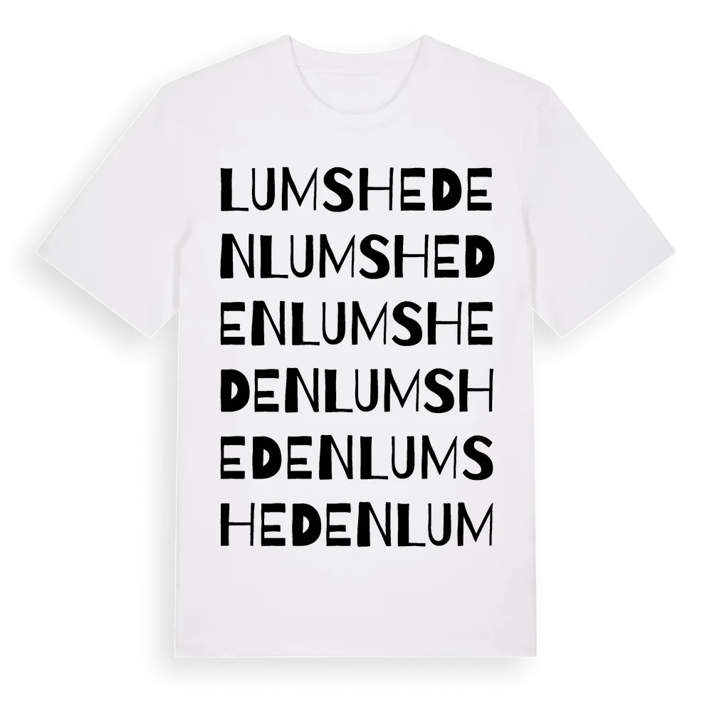 Lumsheden ordlek t-shirt är inspirerad av byn Lumsheden i Dalarnas län, Sverige. Tröjan är designad för dig som har en speciell koppling till platsen – oavsett om du bor här, har rötterna här eller bara älskar Lumsheden.