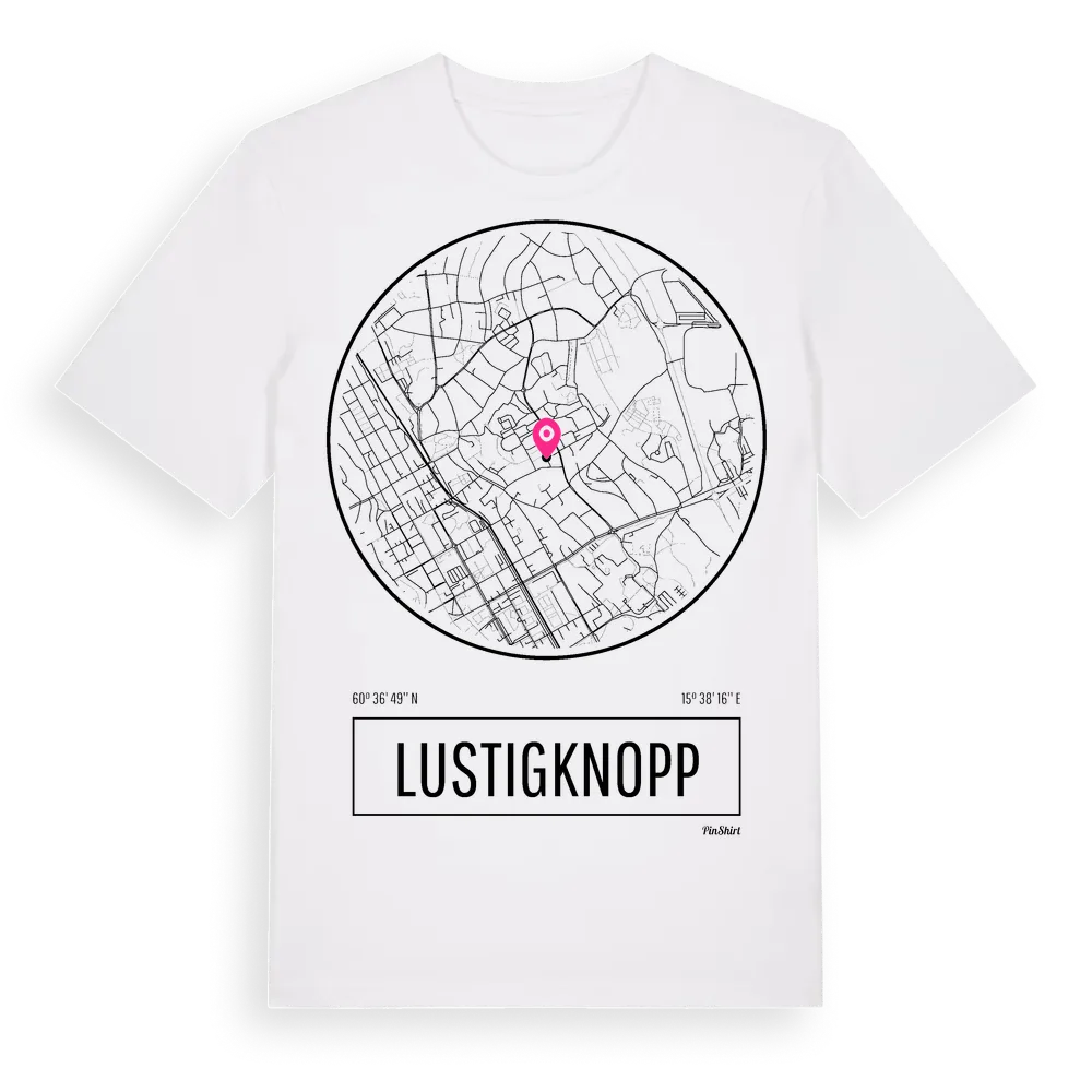 Lustigknopp t-shirt är inspirerad av stadsdelen Lustigknopp i Dalarnas län, Sverige. Tröjan är designad för dig som har en speciell koppling till platsen – oavsett om du bor här, har rötterna här eller bara älskar Lustigknopp.