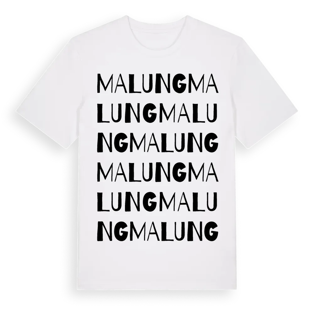 En ordlek byggd på Malungs namn. Subtilt och klurig – ett motiv som bara de som verkligen känner platsen fullt ut förstår. Premium bomull, unisex – från staden Malung i Dalarnas län.
