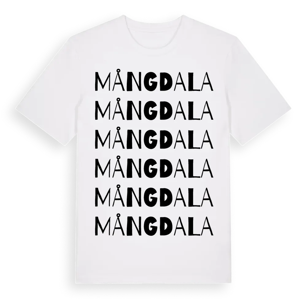 Mångdala ordlek t-shirt är inspirerad av Mångdala i Dalarnas län, Sverige. Tröjan är designad för dig som har en speciell koppling till platsen – oavsett om du bor här, har rötterna här eller bara älskar Mångdala.