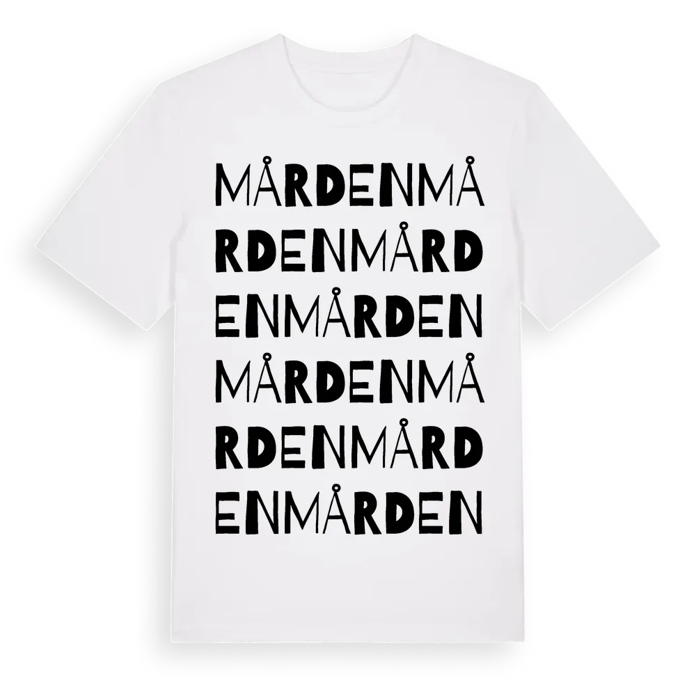 Mården ordlek t-shirt är inspirerad av Mården i Dalarnas län, Sverige. Tröjan är designad för dig som har en speciell koppling till platsen – oavsett om du bor här, har rötterna här eller bara älskar Mården.