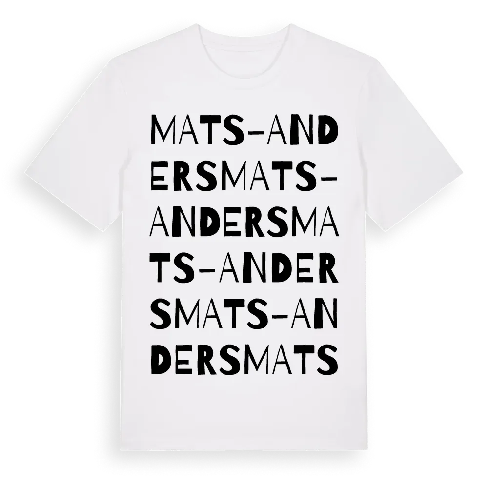 Mats-Anders ordlek t-shirt är inspirerad av Mats-Anders i Dalarnas län, Sverige. Tröjan är designad för dig som har en speciell koppling till platsen – oavsett om du bor här, har rötterna här eller bara älskar Mats-Anders.