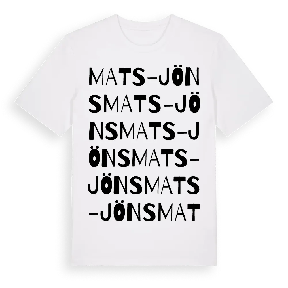 Mats-Jöns ordlek t-shirt är inspirerad av Mats-Jöns i Dalarnas län, Sverige. Tröjan är designad för dig som har en speciell koppling till platsen – oavsett om du bor här, har rötterna här eller bara älskar Mats-Jöns.