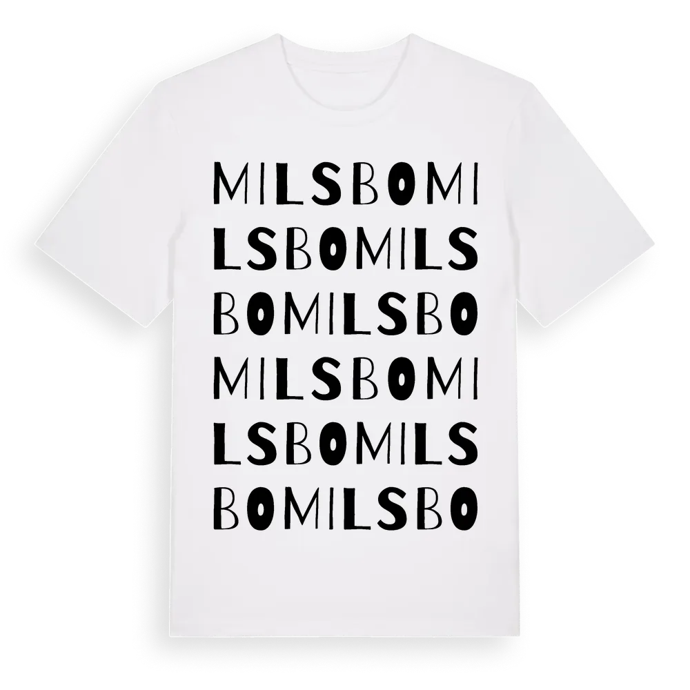 Milsbo ordlek t-shirt är inspirerad av byn Milsbo i Dalarnas län, Sverige. Tröjan är designad för dig som har en speciell koppling till platsen – oavsett om du bor här, har rötterna här eller bara älskar Milsbo.
