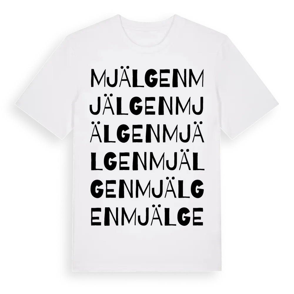 Mjälgen ordlek t-shirt är inspirerad av byn Mjälgen i Dalarnas län, Sverige. Tröjan är designad för dig som har en speciell koppling till platsen – oavsett om du bor här, har rötterna här eller bara älskar Mjälgen.