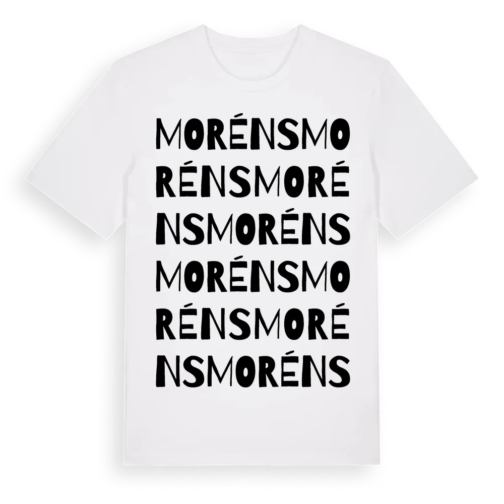 En ordlek byggd på Morénss namn. Subtilt och klurig – ett motiv som bara de som verkligen känner platsen fullt ut förstår. Premium bomull, unisex – från Moréns i Dalarnas län.