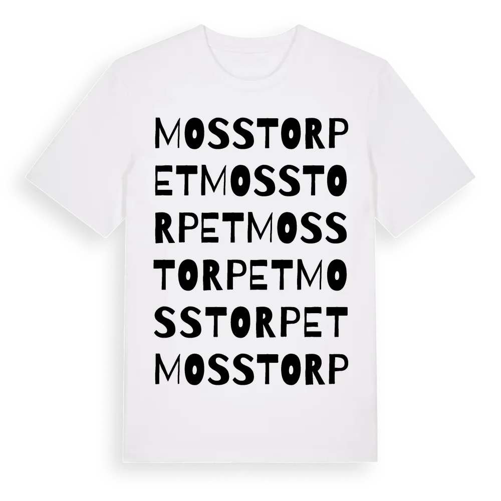 Mosstorpet ordlek t-shirt är inspirerad av Mosstorpet i Dalarnas län, Sverige. Tröjan är designad för dig som har en speciell koppling till platsen – oavsett om du bor här, har rötterna här eller bara älskar Mosstorpet.