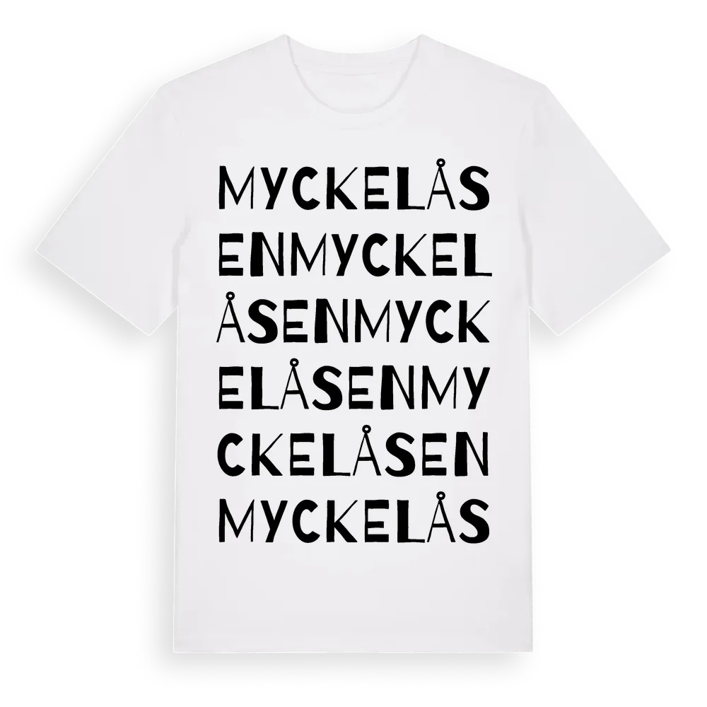 Myckelåsen ordlek t-shirt är inspirerad av Myckelåsen i Dalarnas län, Sverige. Tröjan är designad för dig som har en speciell koppling till platsen – oavsett om du bor här, har rötterna här eller bara älskar Myckelåsen.
