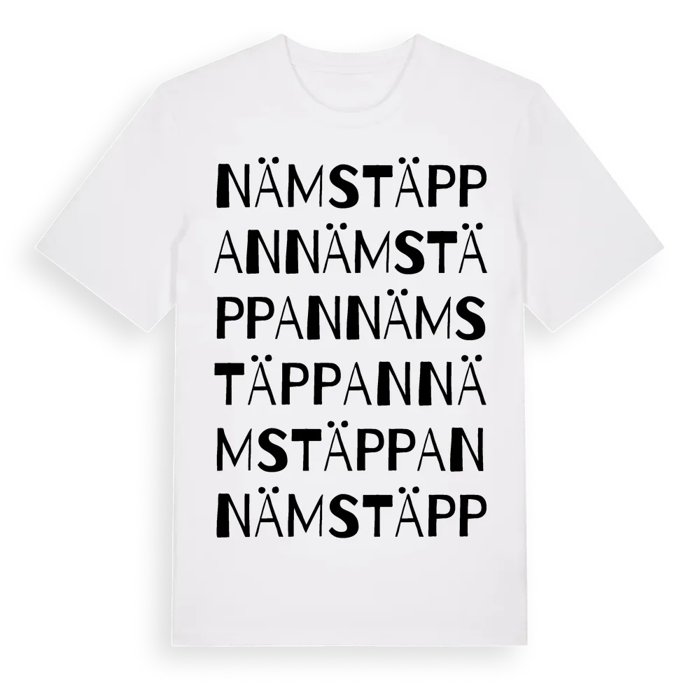 Nämstäppan ordlek t-shirt är inspirerad av Nämstäppan i Dalarnas län, Sverige. Tröjan är designad för dig som har en speciell koppling till platsen – oavsett om du bor här, har rötterna här eller bara älskar Nämstäppan.