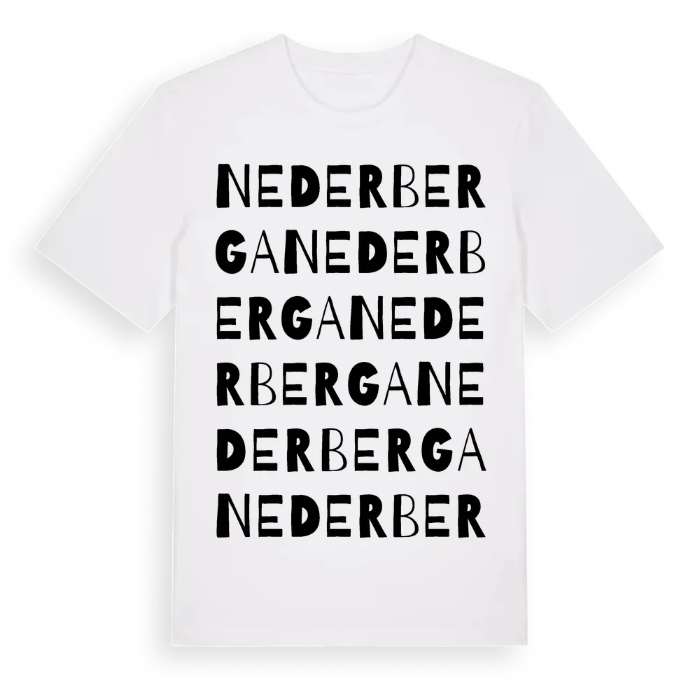 Nederberga ordlek t-shirt är inspirerad av byn Nederberga i Dalarnas län, Sverige. Tröjan är designad för dig som har en speciell koppling till platsen – oavsett om du bor här, har rötterna här eller bara älskar Nederberga.