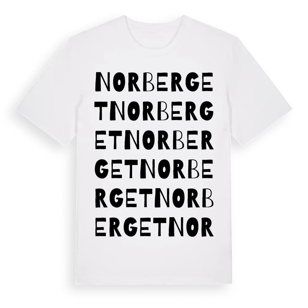 Norberget ordlek t-shirt är inspirerad av byn Norberget i Dalarnas län, Sverige. Tröjan är designad för dig som har en speciell koppling till platsen – oavsett om du bor här, har rötterna här eller bara älskar Norberget.