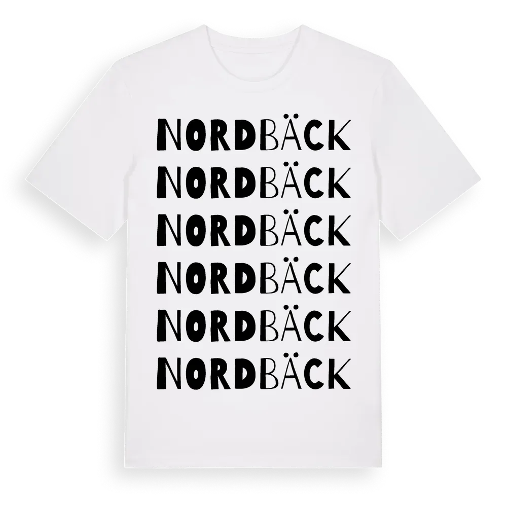 Nordbäck ordlek t-shirt är inspirerad av byn Nordbäck i Dalarnas län, Sverige. Tröjan är designad för dig som har en speciell koppling till platsen – oavsett om du bor här, har rötterna här eller bara älskar Nordbäck.