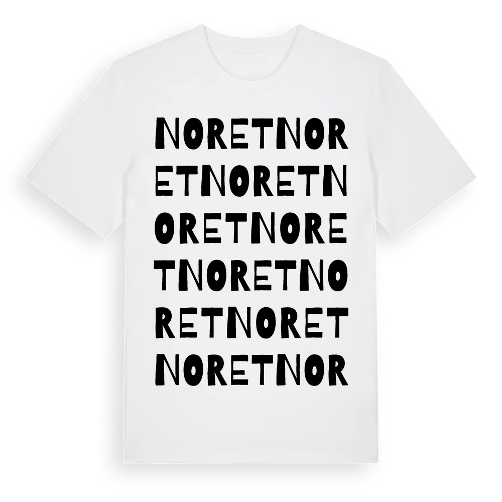 Noret ordlek t-shirt är inspirerad av stadsdelen Noret i Dalarnas län, Sverige. Tröjan är designad för dig som har en speciell koppling till platsen – oavsett om du bor här, har rötterna här eller bara älskar Noret.