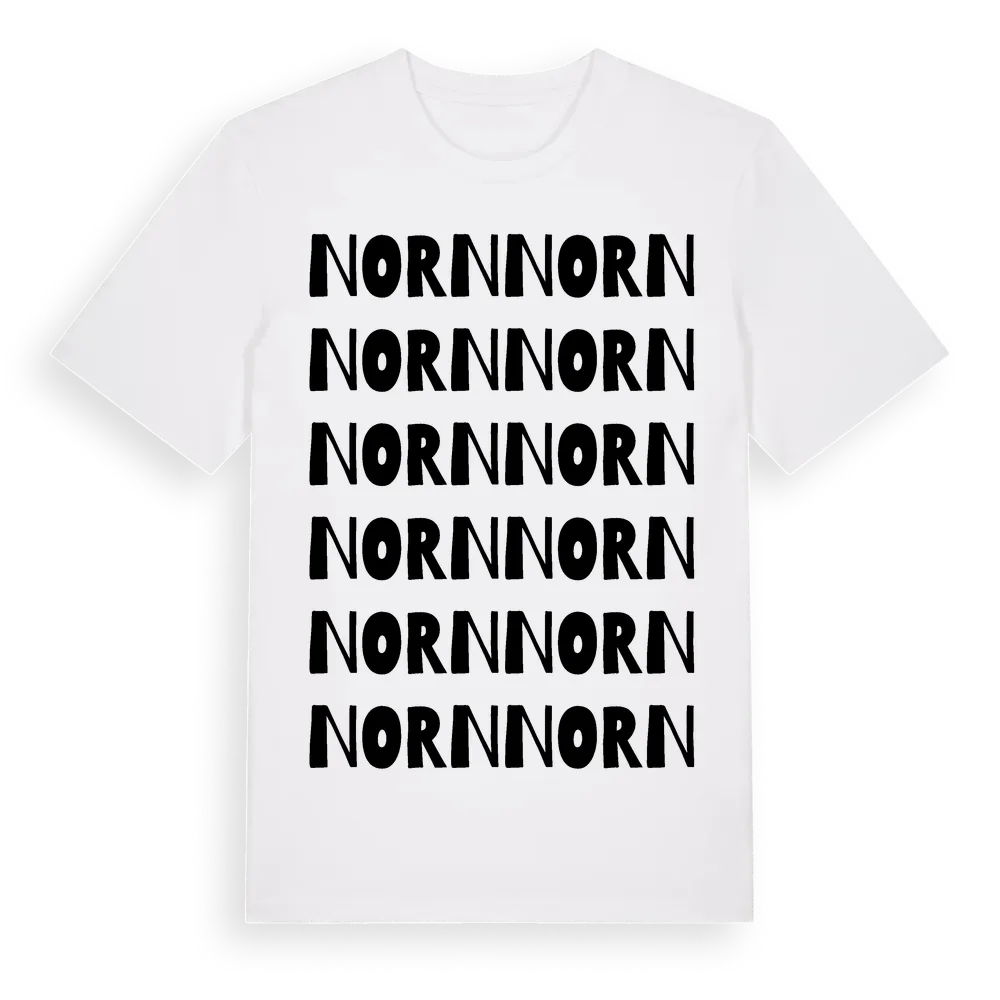 En ordlek byggd på Norns namn. Subtilt och klurig – ett motiv som bara de som verkligen känner platsen fullt ut förstår. Premium bomull, unisex – från byn Norn i Dalarnas län.