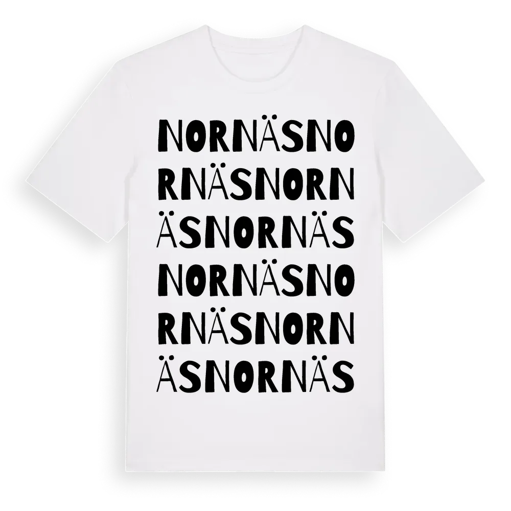 Nornäs ordlek t-shirt är inspirerad av byn Nornäs i Dalarnas län, Sverige. Tröjan är designad för dig som har en speciell koppling till platsen – oavsett om du bor här, har rötterna här eller bara älskar Nornäs.