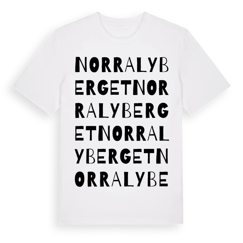 Norra Lyberget ordlek t-shirt är inspirerad av byn Norra Lyberget i Dalarnas län, Sverige. Tröjan är designad för dig som har en speciell koppling till platsen – oavsett om du bor här, har rötterna här eller bara älskar Norra Lyberget.