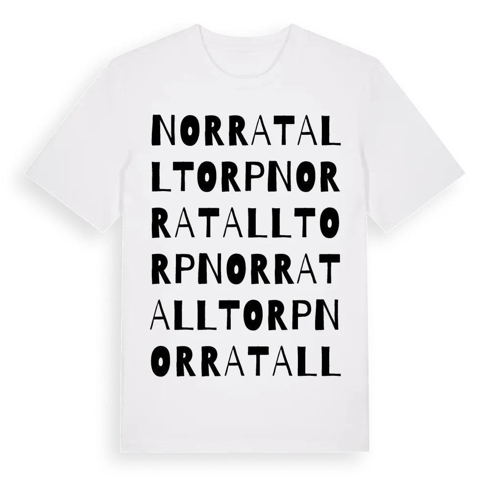 Norra Talltorp ordlek t-shirt är inspirerad av Norra Talltorp i Dalarnas län, Sverige. Tröjan är designad för dig som har en speciell koppling till platsen – oavsett om du bor här, har rötterna här eller bara älskar Norra Talltorp.