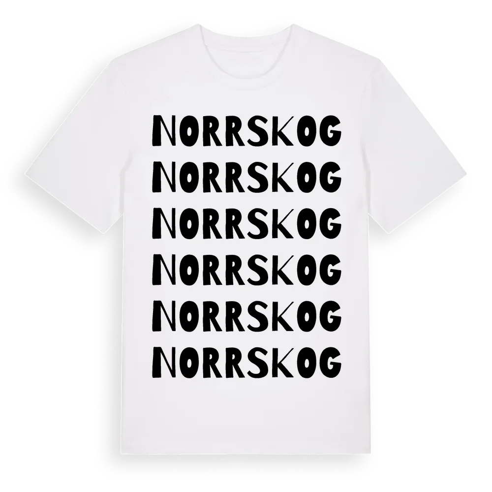 Norrskog ordlek t-shirt är inspirerad av Norrskog i Dalarnas län, Sverige. Tröjan är designad för dig som har en speciell koppling till platsen – oavsett om du bor här, har rötterna här eller bara älskar Norrskog.