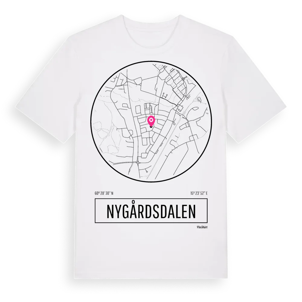 Nygårdsdalen t-shirt är inspirerad av stadsdelen Nygårdsdalen i Dalarnas län, Sverige. Tröjan är designad för dig som har en speciell koppling till platsen – oavsett om du bor här, har rötterna här eller bara älskar Nygårdsdalen.