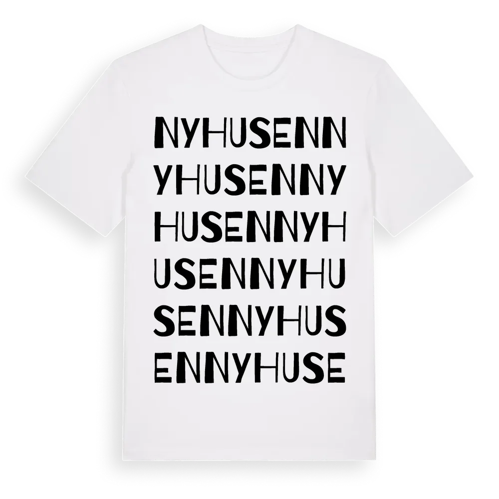 En ordlek byggd på Nyhusens namn. Subtilt och klurig – ett motiv som bara de som verkligen känner platsen fullt ut förstår. Premium bomull, unisex – från Nyhusen i Dalarnas län.
