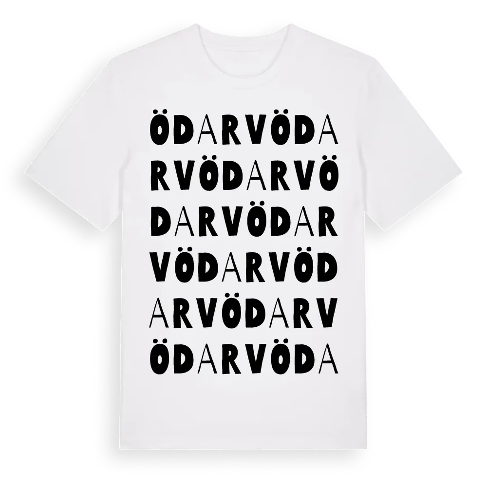 Ödarv ordlek t-shirt är inspirerad av byn Ödarv i Dalarnas län, Sverige. Tröjan är designad för dig som har en speciell koppling till platsen – oavsett om du bor här, har rötterna här eller bara älskar Ödarv.
