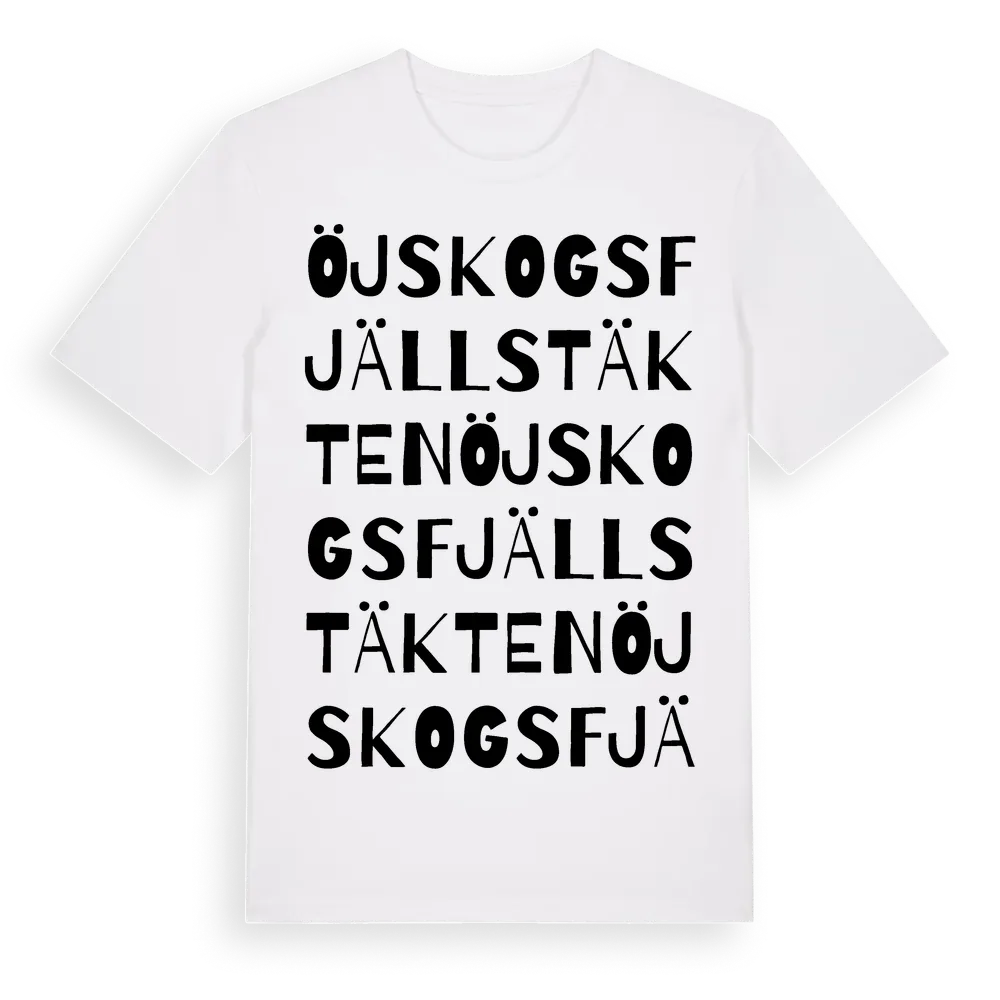 Öjskogsfjällstäkten ordlek t-shirt är inspirerad av Öjskogsfjällstäkten i Dalarnas län, Sverige. Tröjan är designad för dig som har en speciell koppling till platsen – oavsett om du bor här, har rötterna här eller bara älskar Öjskogsfjällstäkten.