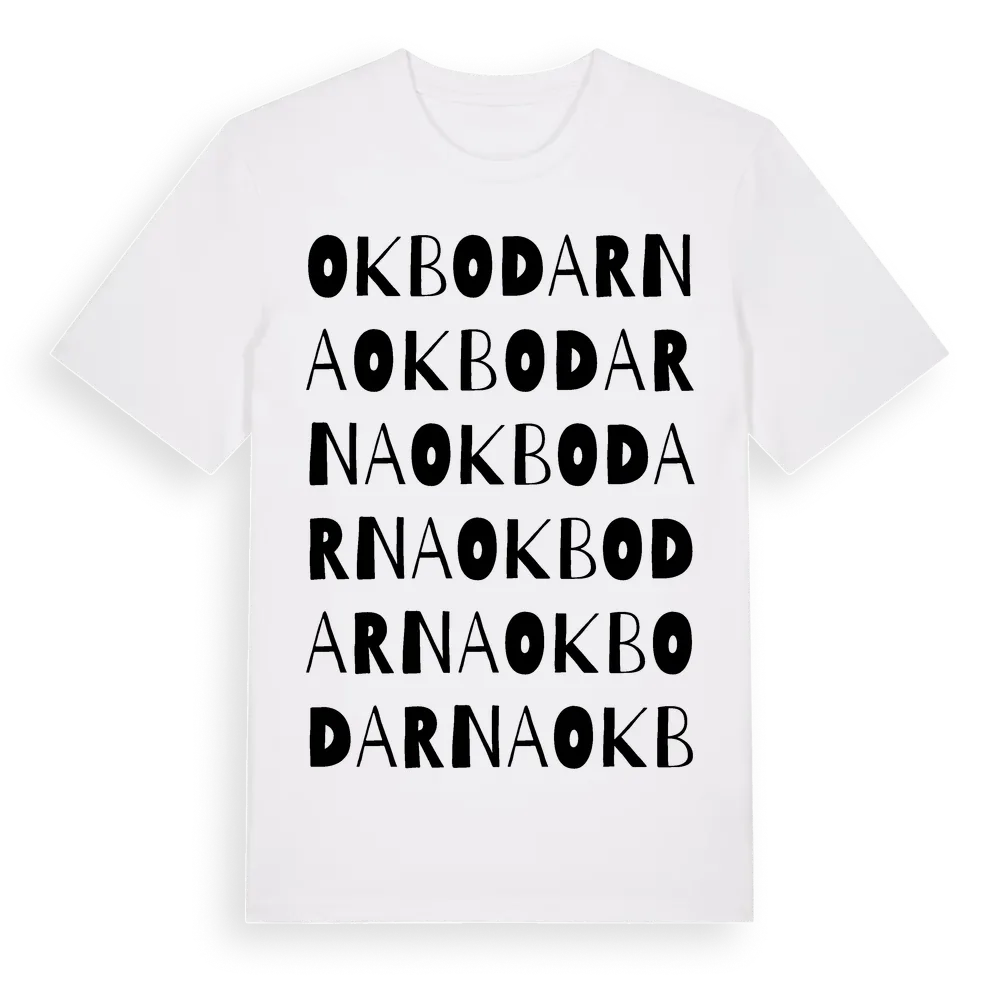 Okbodarna ordlek t-shirt är inspirerad av byn Okbodarna i Dalarnas län, Sverige. Tröjan är designad för dig som har en speciell koppling till platsen – oavsett om du bor här, har rötterna här eller bara älskar Okbodarna.