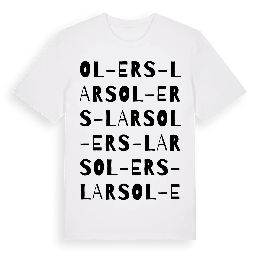 Ol-Ers-Lars ordlek t-shirt är inspirerad av Ol-Ers-Lars i Dalarnas län, Sverige. Tröjan är designad för dig som har en speciell koppling till platsen – oavsett om du bor här, har rötterna här eller bara älskar Ol-Ers-Lars.