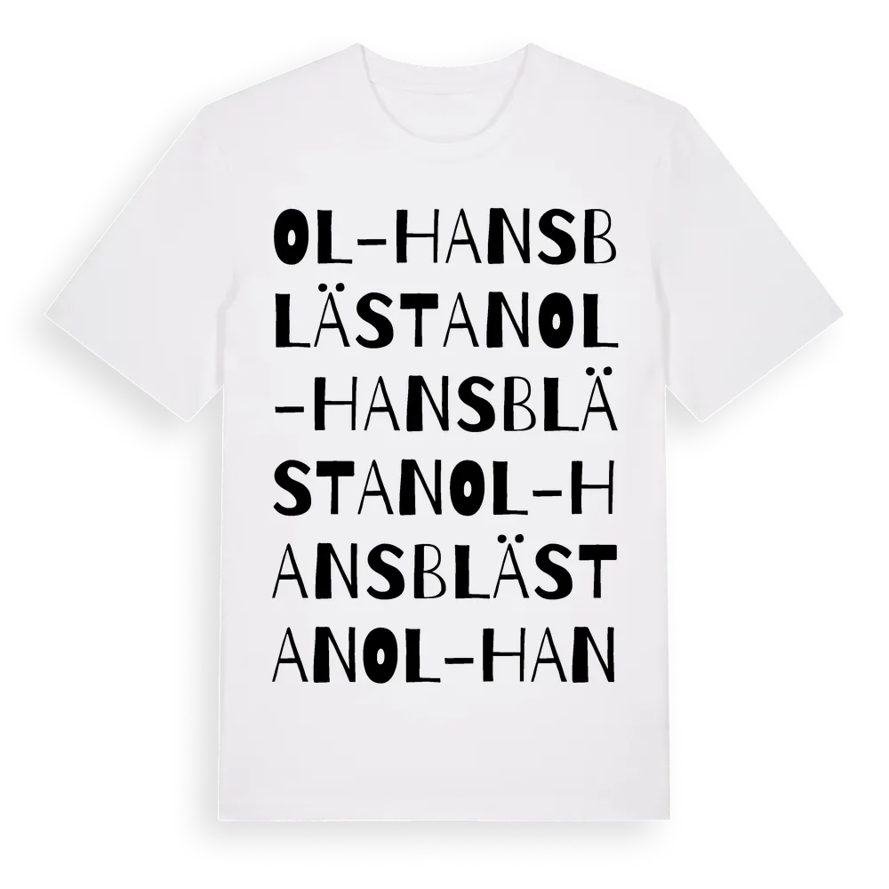 Ol-Hansblästan ordlek t-shirt är inspirerad av byn Ol-Hansblästan i Dalarnas län, Sverige. Tröjan är designad för dig som har en speciell koppling till platsen – oavsett om du bor här, har rötterna här eller bara älskar Ol-Hansblästan.