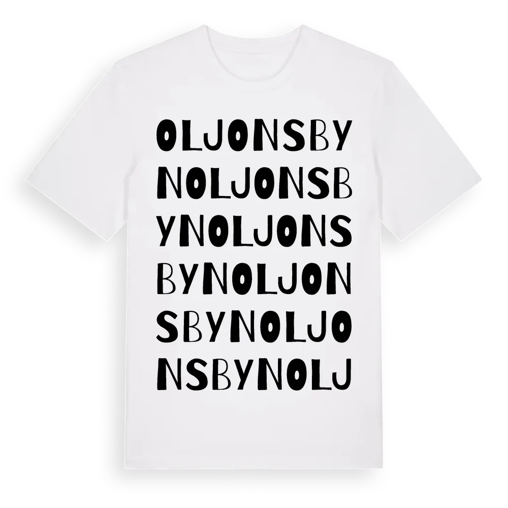 Oljonsbyn ordlek t-shirt är inspirerad av byn Oljonsbyn i Dalarnas län, Sverige. Tröjan är designad för dig som har en speciell koppling till platsen – oavsett om du bor här, har rötterna här eller bara älskar Oljonsbyn.