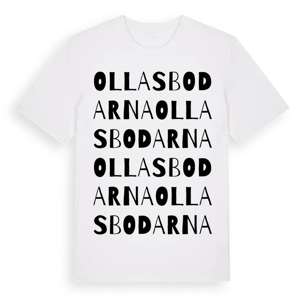 Ollasbodarna ordlek t-shirt är inspirerad av Ollasbodarna i Dalarnas län, Sverige. Tröjan är designad för dig som har en speciell koppling till platsen – oavsett om du bor här, har rötterna här eller bara älskar Ollasbodarna.