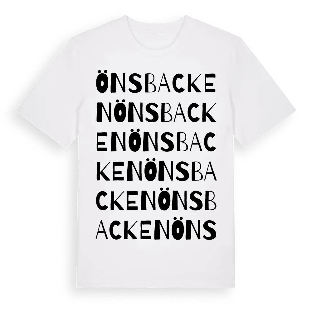 Önsbacken ordlek t-shirt är inspirerad av stadsdelen Önsbacken i Dalarnas län, Sverige. Tröjan är designad för dig som har en speciell koppling till platsen – oavsett om du bor här, har rötterna här eller bara älskar Önsbacken.