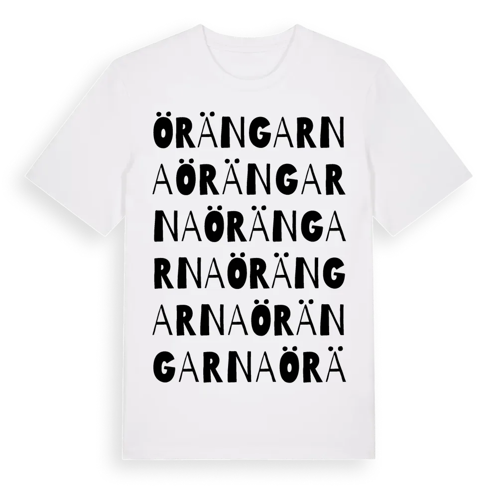 Örängarna ordlek t-shirt är inspirerad av Örängarna i Dalarnas län, Sverige. Tröjan är designad för dig som har en speciell koppling till platsen – oavsett om du bor här, har rötterna här eller bara älskar Örängarna.
