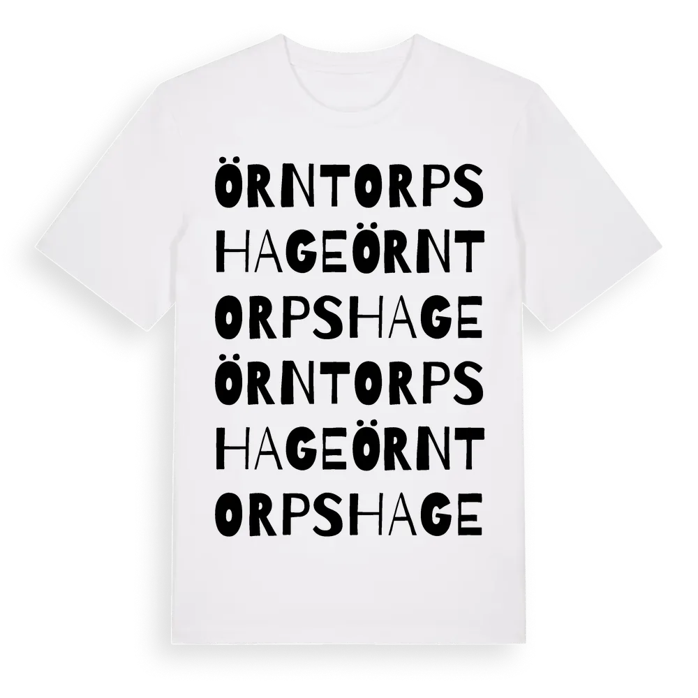 Örntorps Hage ordlek t-shirt är inspirerad av stadsdelen Örntorps Hage i Dalarnas län, Sverige. Tröjan är designad för dig som har en speciell koppling till platsen – oavsett om du bor här, har rötterna här eller bara älskar Örntorps Hage.