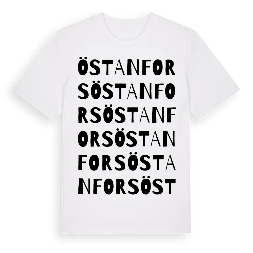 Östanfors ordlek t-shirt är inspirerad av stadsdelen Östanfors i Dalarnas län, Sverige. Tröjan är designad för dig som har en speciell koppling till platsen – oavsett om du bor här, har rötterna här eller bara älskar Östanfors.