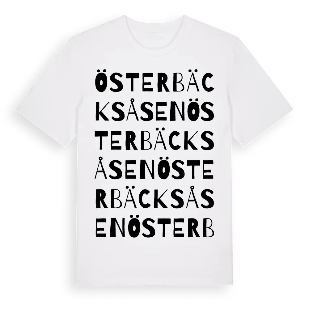 Österbäcksåsen ordlek t-shirt är inspirerad av Österbäcksåsen i Dalarnas län, Sverige. Tröjan är designad för dig som har en speciell koppling till platsen – oavsett om du bor här, har rötterna här eller bara älskar Österbäcksåsen.