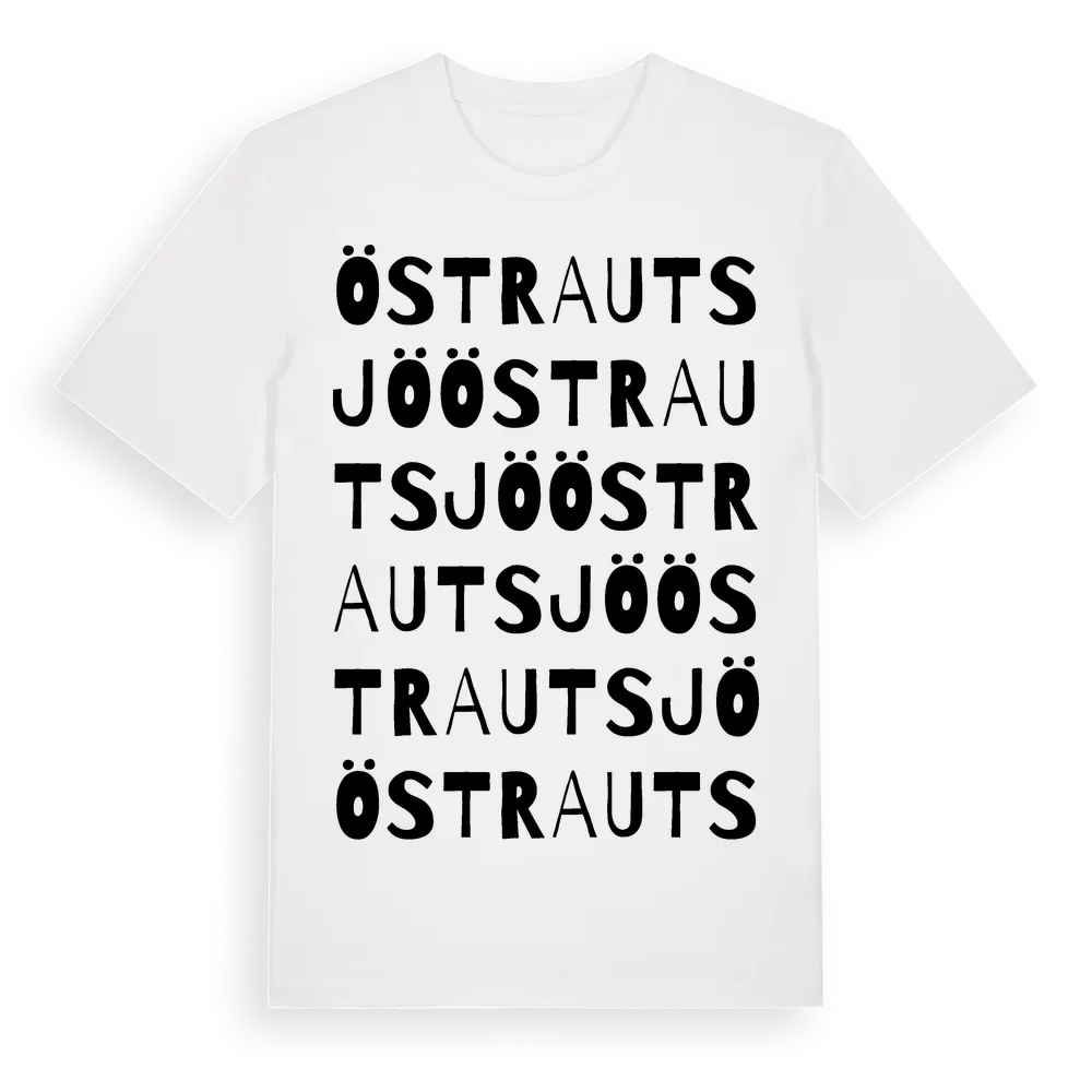 Östra Utsjö ordlek t-shirt är inspirerad av byn Östra Utsjö i Dalarnas län, Sverige. Tröjan är designad för dig som har en speciell koppling till platsen – oavsett om du bor här, har rötterna här eller bara älskar Östra Utsjö.