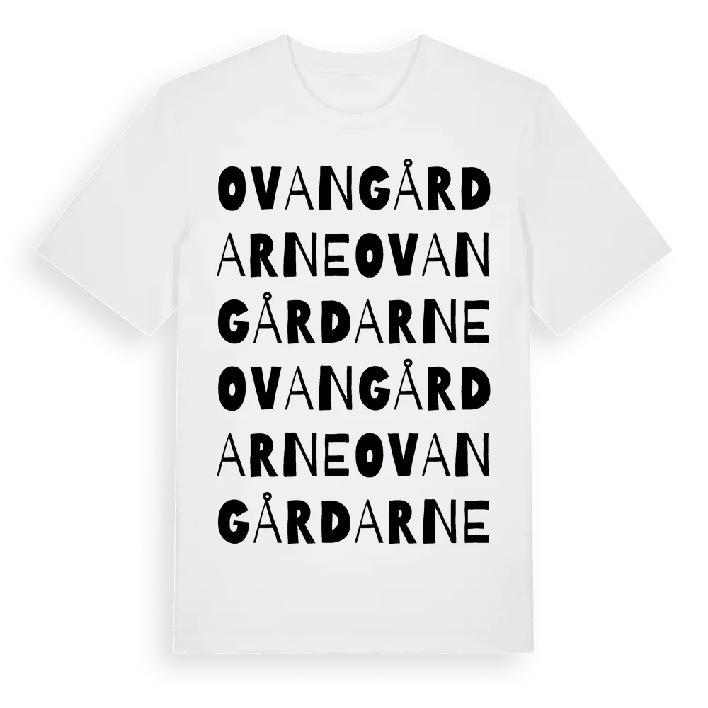Ovangårdarne ordlek t-shirt är inspirerad av stadsdelen Ovangårdarne i Dalarnas län, Sverige. Tröjan är designad för dig som har en speciell koppling till platsen – oavsett om du bor här, har rötterna här eller bara älskar Ovangårdarne.