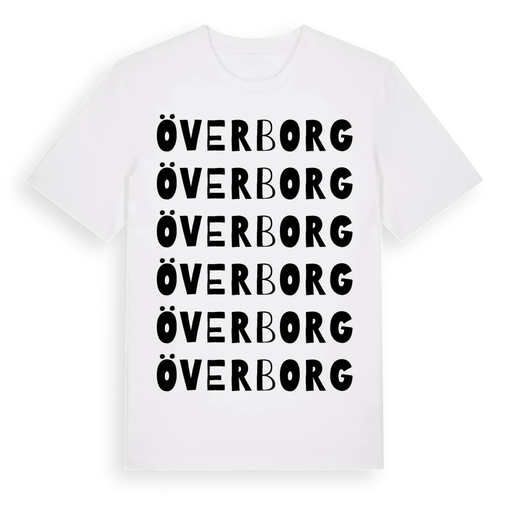 En ordlek byggd på Överborgs namn. Subtilt och klurig – ett motiv som bara de som verkligen känner platsen fullt ut förstår. Premium bomull, unisex – från byn Överborg i Dalarnas län.