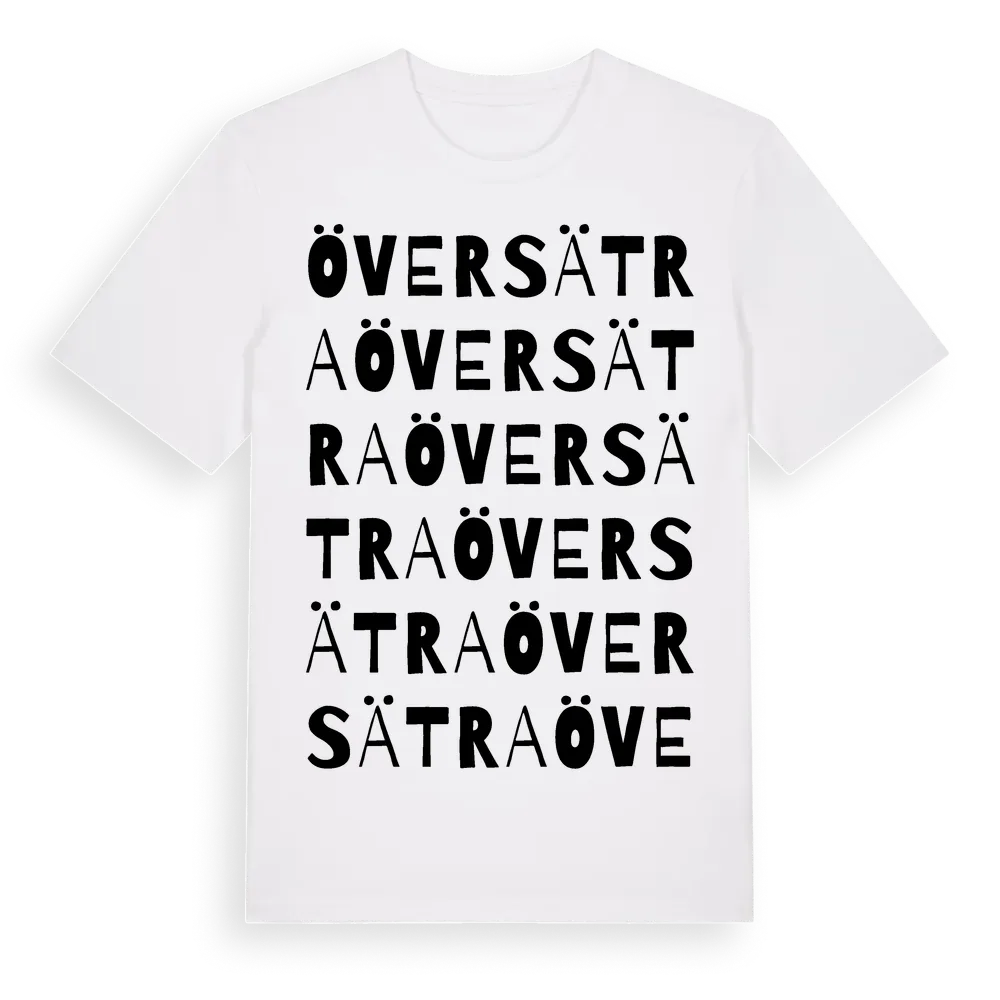 Översätra ordlek t-shirt är inspirerad av byn Översätra i Dalarnas län, Sverige. Tröjan är designad för dig som har en speciell koppling till platsen – oavsett om du bor här, har rötterna här eller bara älskar Översätra.