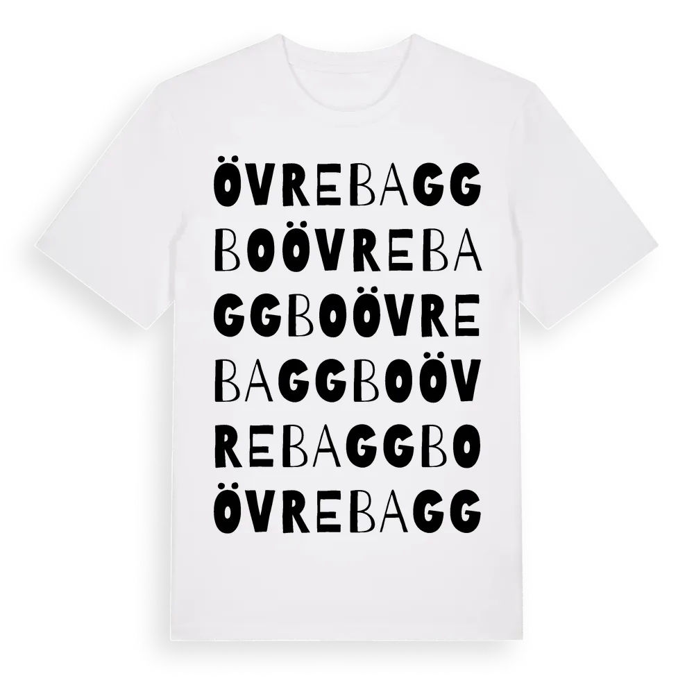 Övre Baggbo ordlek t-shirt är inspirerad av byn Övre Baggbo i Dalarnas län, Sverige. Tröjan är designad för dig som har en speciell koppling till platsen – oavsett om du bor här, har rötterna här eller bara älskar Övre Baggbo.