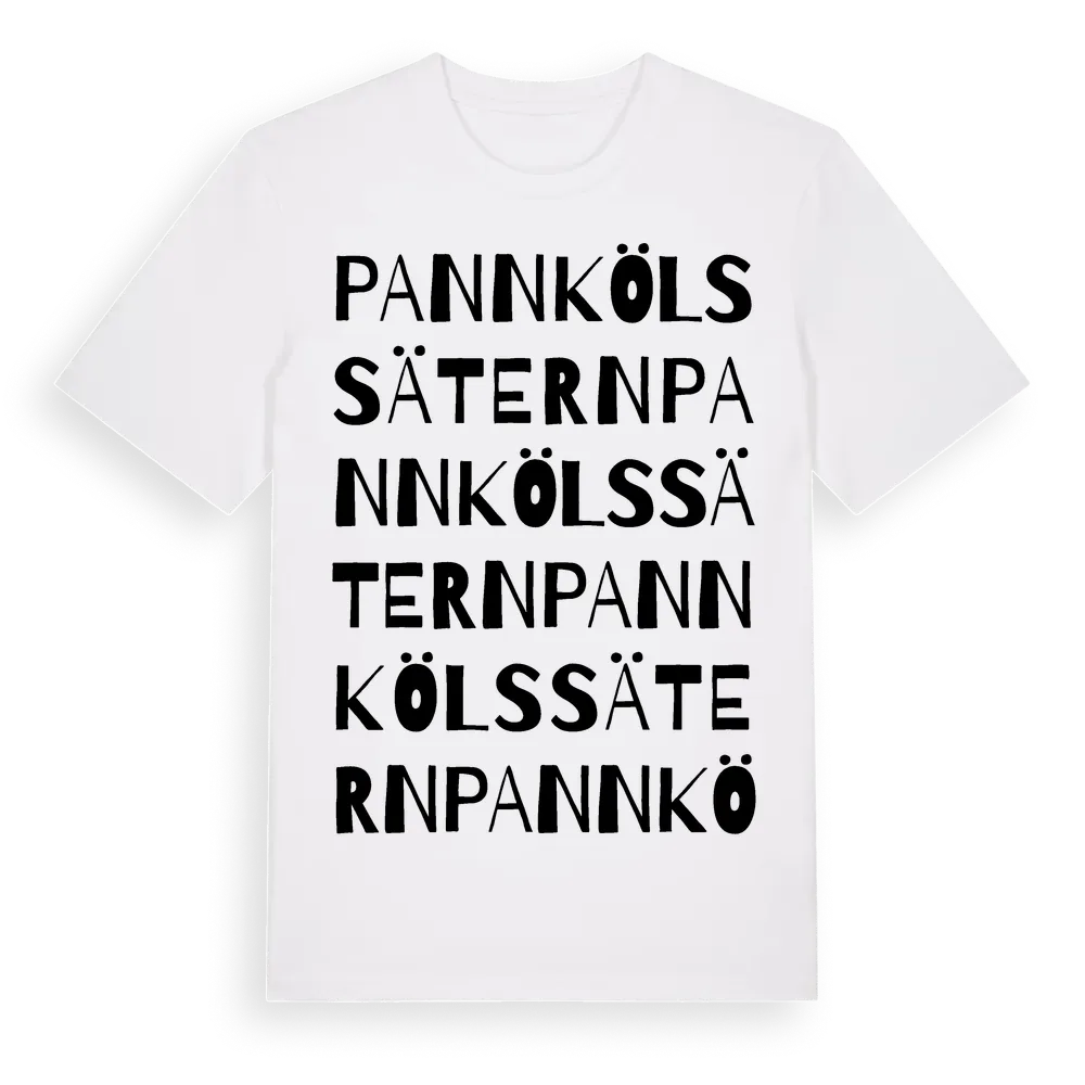 Pannkölssätern ordlek t-shirt är inspirerad av Pannkölssätern i Dalarnas län, Sverige. Tröjan är designad för dig som har en speciell koppling till platsen – oavsett om du bor här, har rötterna här eller bara älskar Pannkölssätern.