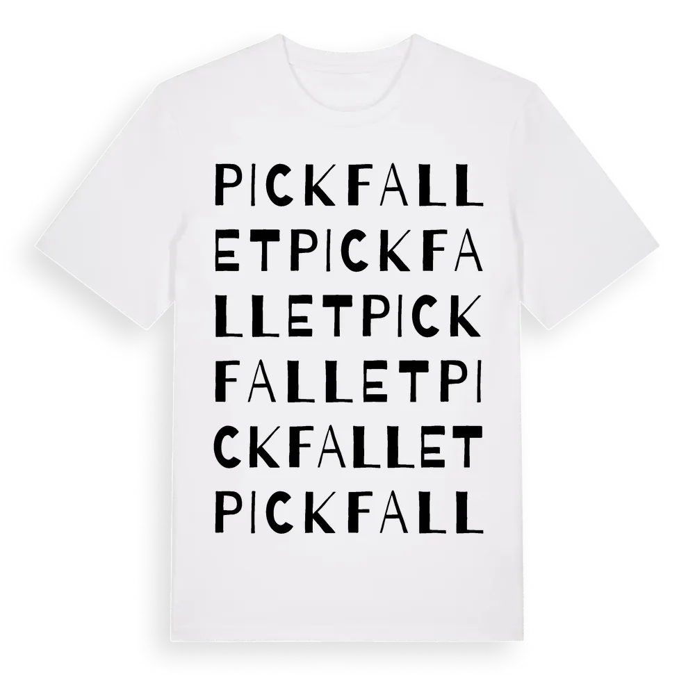 Pickfallet ordlek t-shirt är inspirerad av Pickfallet i Dalarnas län, Sverige. Tröjan är designad för dig som har en speciell koppling till platsen – oavsett om du bor här, har rötterna här eller bara älskar Pickfallet.