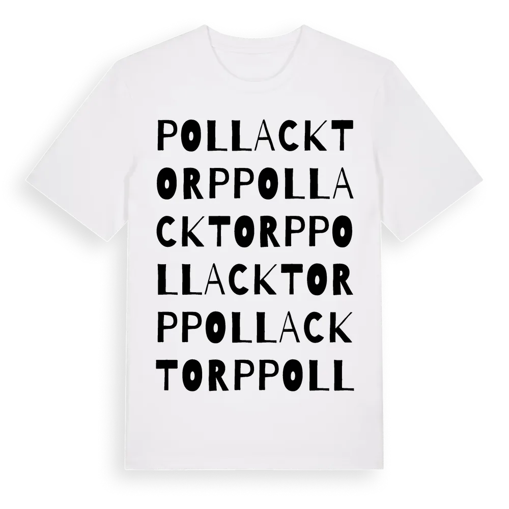 Pollacktorp ordlek t-shirt är inspirerad av Pollacktorp i Dalarnas län, Sverige. Tröjan är designad för dig som har en speciell koppling till platsen – oavsett om du bor här, har rötterna här eller bara älskar Pollacktorp.