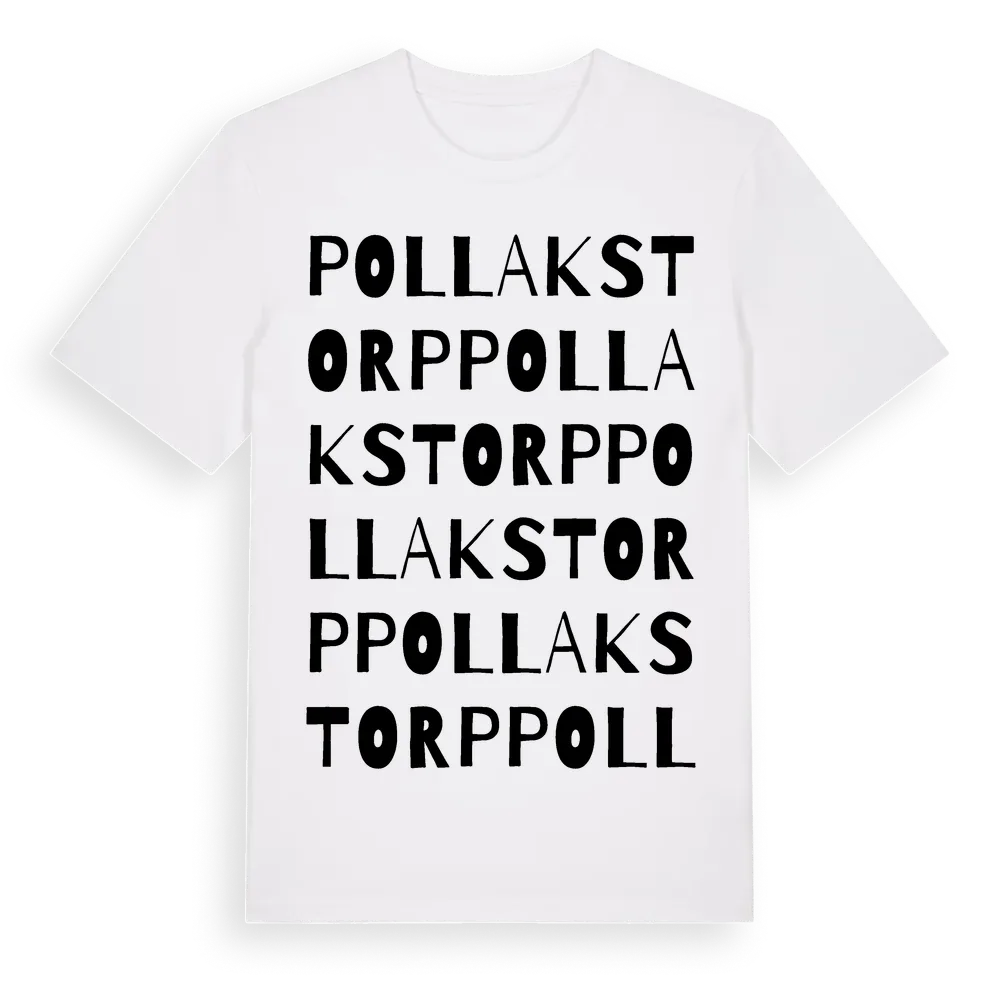 Pollakstorp ordlek t-shirt är inspirerad av Pollakstorp i Dalarnas län, Sverige. Tröjan är designad för dig som har en speciell koppling till platsen – oavsett om du bor här, har rötterna här eller bara älskar Pollakstorp.